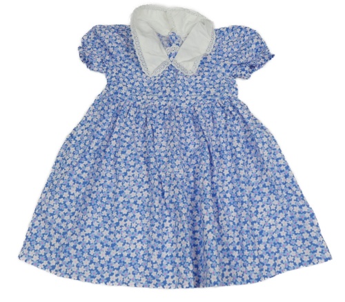 SVětlemodro-tmavomodro-biele kvetované šaty s bielým čipkovým golierikom