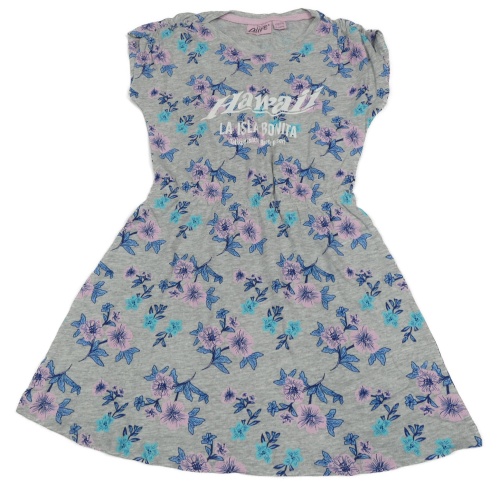 Sivé bavlnené šaty s kvietkami a nápisom Alive