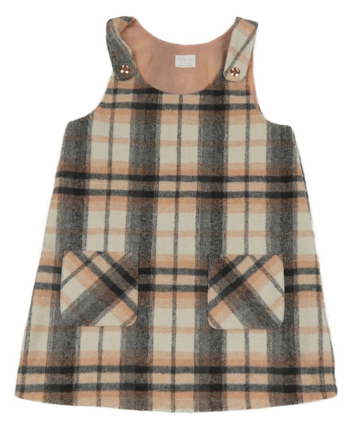 Smetanovo-čierno-lososové kockované vlnené šaty F&F