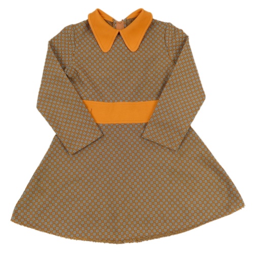 Oranžovo-sivé vzorované šaty s golierikom