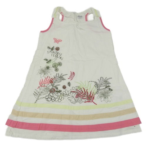 Biele plátenné šaty s výšivkami a pruhmi Kanz