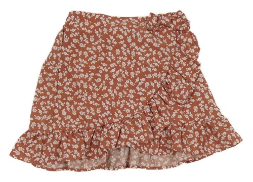Starorůžovo-biela kvetovaná sukňa s volánikom Shein