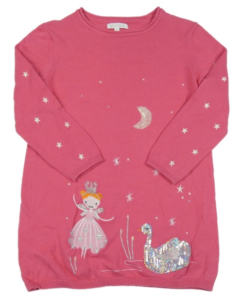 Tmavoružové svetrové šaty s vílou a labuťou a flitrami Bluezoo