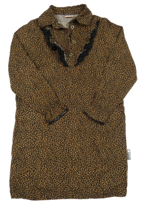 Hnedo-čierne vzorované šaty s límekem a volánikmi Vinrose