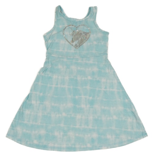 Světlemodro-biele batikované pruhované šaty s jednorožcom