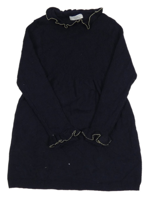 Tmavomodré rebrované svetrové šaty s volánikmi Primark