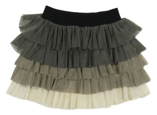 Tmavošedo-sivo-béžová tylová vrstvená sukňa