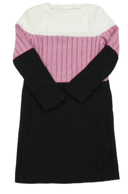 Bielo-ružovo-čierne rebrované úpletové šaty Shein