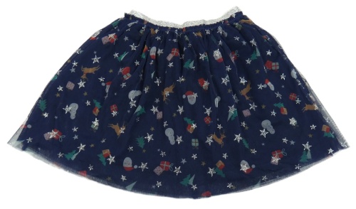 Tmavomodrá tylová sukňa s vánočními obrázky Tu