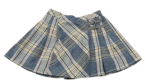 Modro-bielo-farebná kockovaná vlnená sukňa s přezkou George