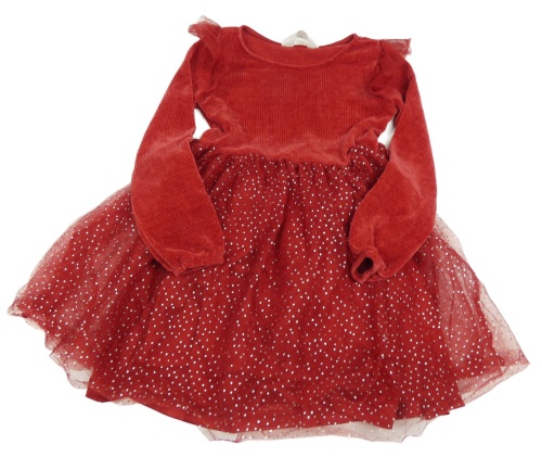 Červené svetrové žinylkové šaty s tylovou puntíkovanou sukní H&M
