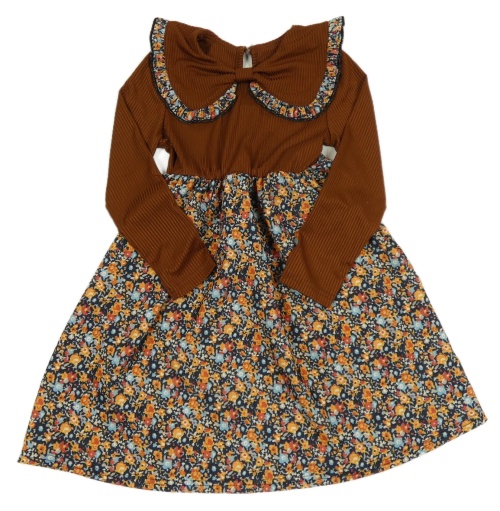 Hrdzavé rebrované šaty s květovanou sukní
