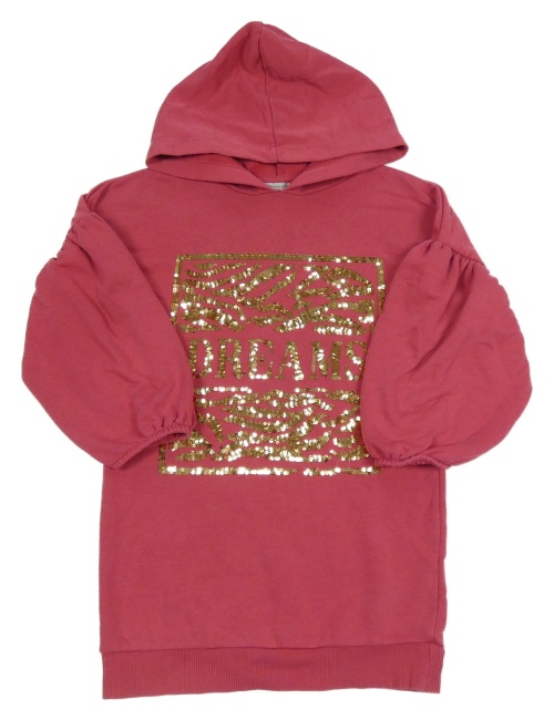 Tmavoružové teplákové šaty so zlatými flitre a kapucňou Matalan