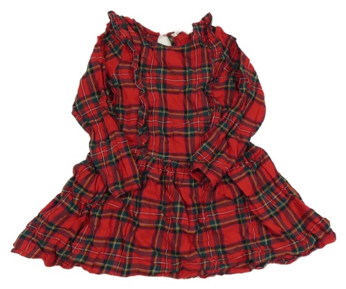 Červeno-zelené kockované plátenné šaty s volánikmi H&M