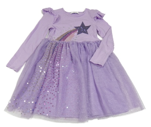 Levandulové šaty s kometou z flitrů a tylem s bodkami a volánikmi PRIMARK