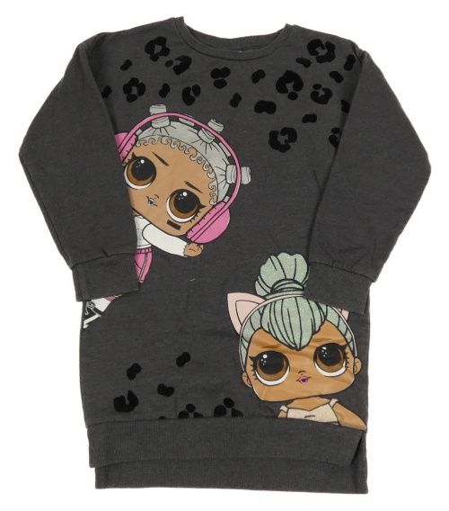 Tmavosivé melírované teplákové šaty s L.O.L. SURPRISE! a vzorom Matalan