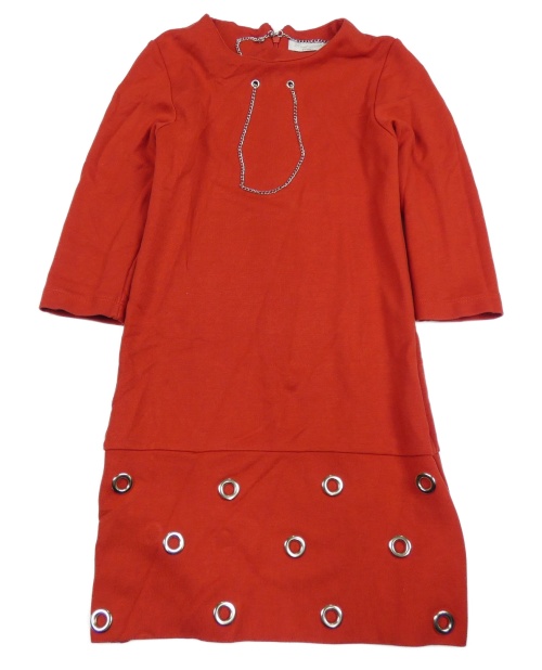 Červené šaty s řetězy a cvokmi