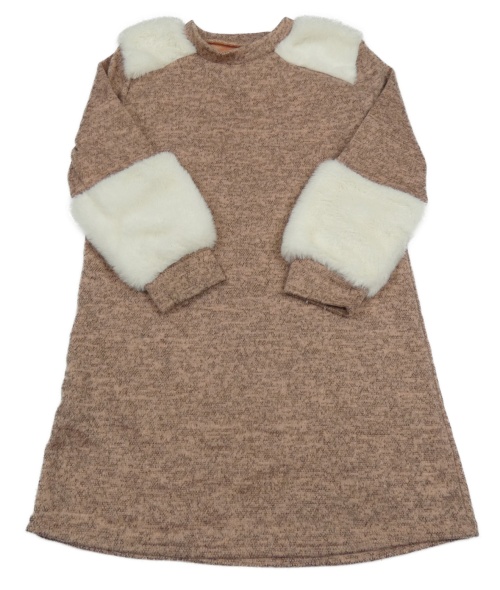 Pudrovo-hnedo-sivé melírované úpletové šaty s bílou kožešinou