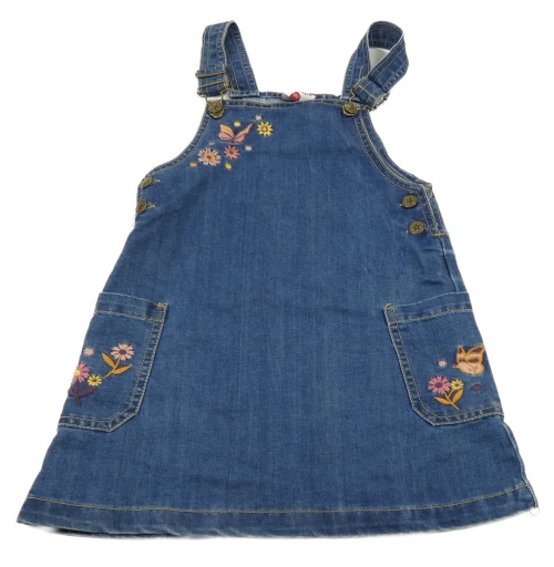 Modré rifľové na traké šaty s výšivkami květin a motýlů Topolino