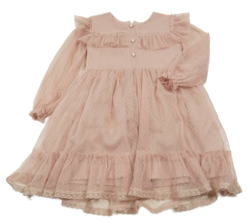 Staroružové tylové šaty s perlovými gombíky