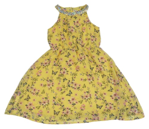 Žlté kvetované šifónové šaty s motýly a flitrami Kiki&Koko