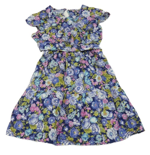 Tmavomodré kvetované šaty s opaskom