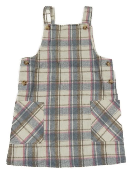 Sivo-smetanovo-ružové kockované vlnené na traké šaty Primark