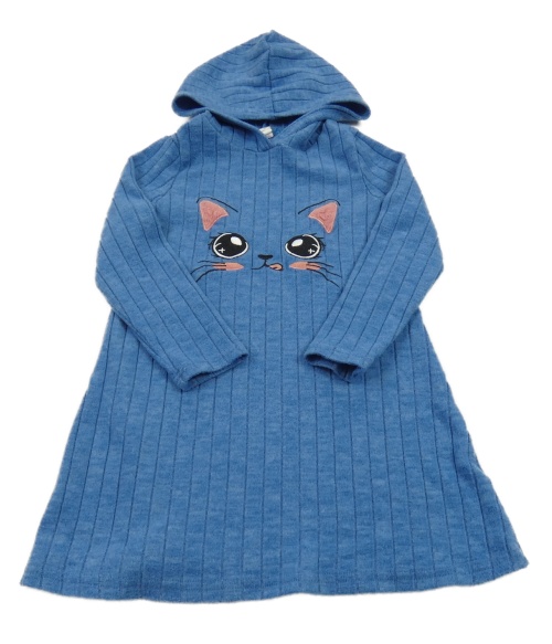 Modré melírované rebrované úpletové šaty s mačičkou a kapucňou SHEIN
