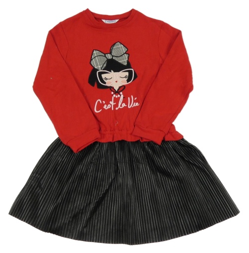 Červeno-čierne teplákovo/koženkové šaty s dívkou Mayoral