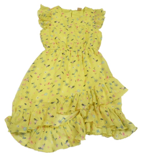 Žlté šifónové šaty s kvetinami a zvířaty Kiki&Koko