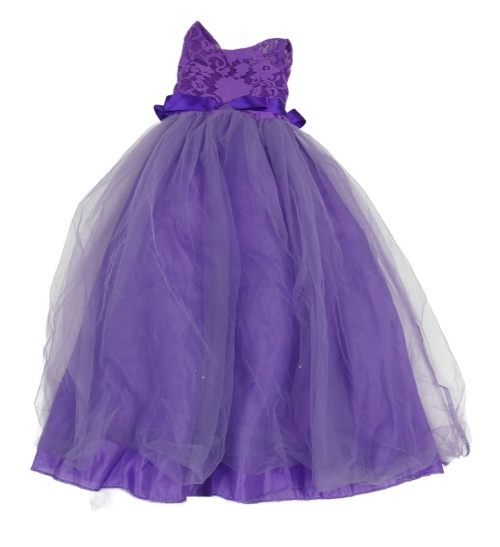 Fialové krajkové/tylové slávnostné šaty s opaskom