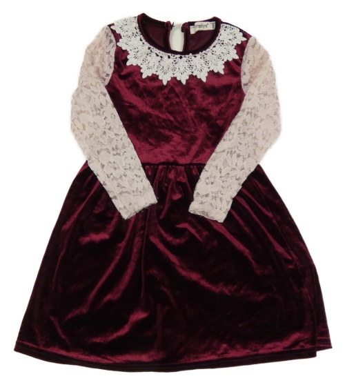 Vínové zamatové šaty s čipkovymi rukávy Maelys