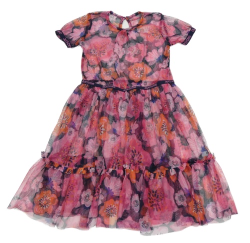 Ružovo-tmavomodré kvietkovane tylové šaty