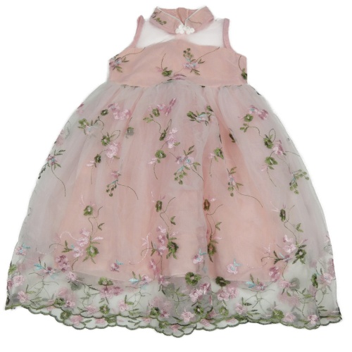 Svetloružové tylové šaty so stojáčkem, výšivkou a kvetinami