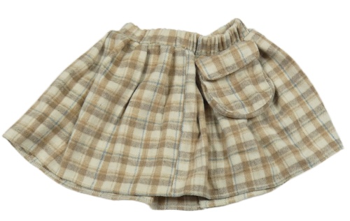 Béžovo-hnedá kockovaná úpletová kolová sukňa s vreckom