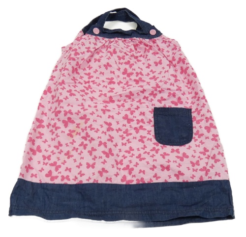 Ružovo-tmavomodré plátěno/riflové letné šaty s motýlikmi Kiki&Koko
