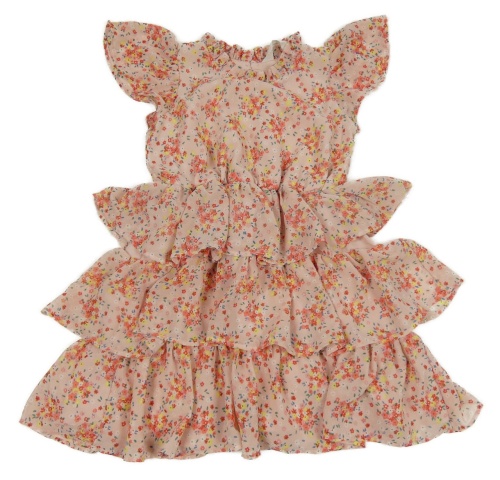 Ružovo-farebné kvetované šifónové vrstvené šaty H&M