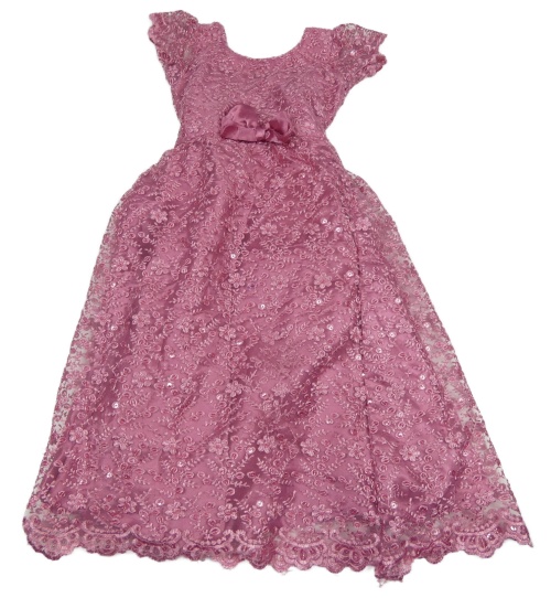 Ružové čipkové tylové slávnostné šaty s flitrami a mašlou