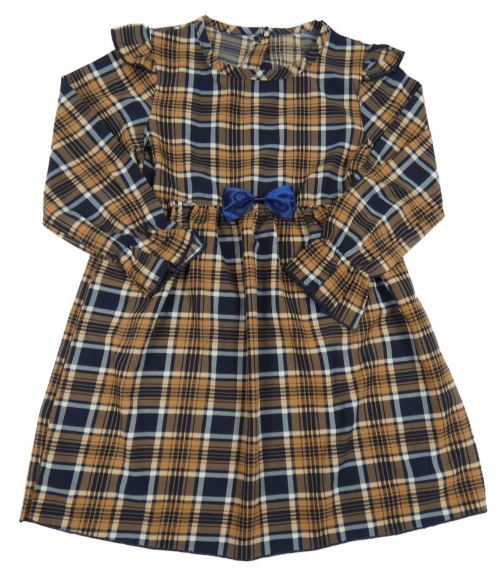 Hnedo-tmavomodro-pudrové kockované šaty s mašlou a volánikmi SHEIN