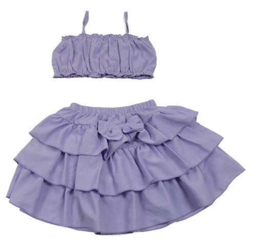 2Set - Fialová vrstvená sukňa s mašlí + crop top SHEIN