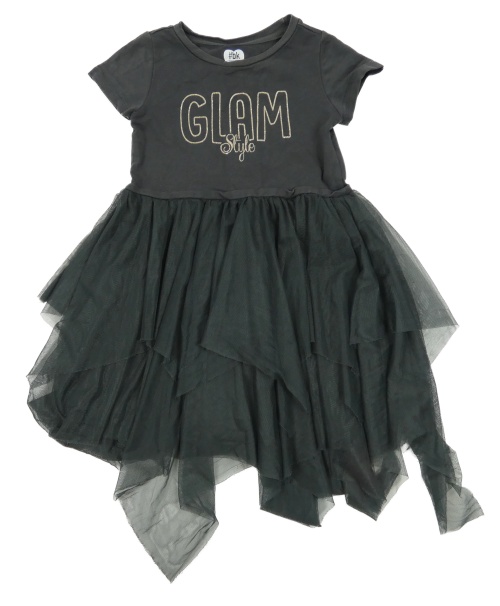 Tmavosivé bavlněno/tylové šaty s nápisom