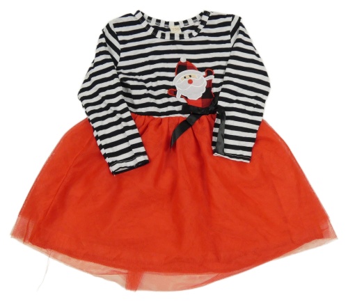 Bielo-čierno-červené bavlněno/tylové šaty s pruhmi a Santou