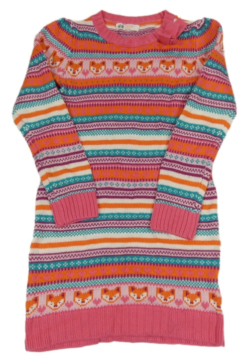 Ružovo-farebné vzorované svetrové šaty s liškami a mašlou H&M