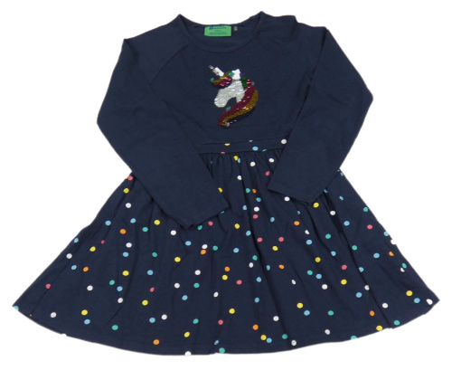 Tmavomodré šaty s jednorožcom a puntíkatou sukní Mountain Warehouse
