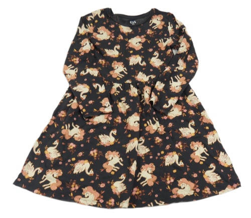 Antracitovo-ružové vzorované bavlnené šaty s jednorožcami C&A