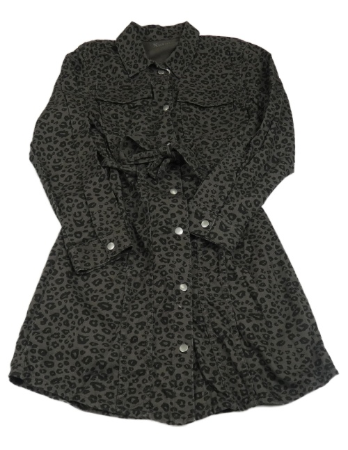 Antracitové plátenné prepínaci košeľové šaty s leopardím vzorom a opaskom Nutmeg