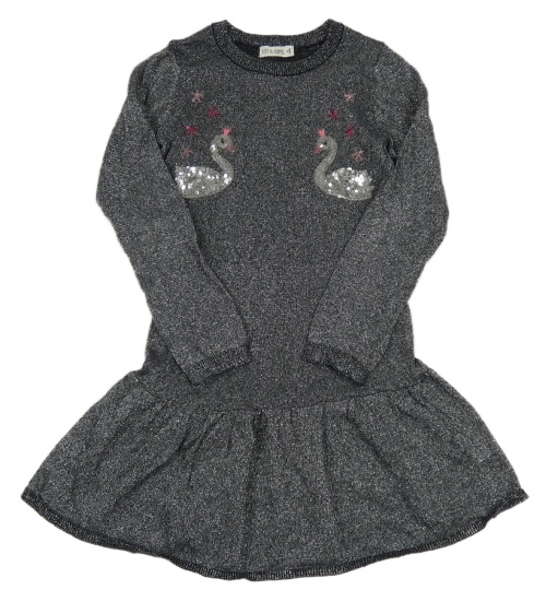 Tmavosivé trblietavé šaty s labuťami M&Co.
