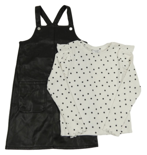2Set - Čierne koženkové šaty + biele rebrované tričko s hviezdičkami a volánikmi PRIMARK