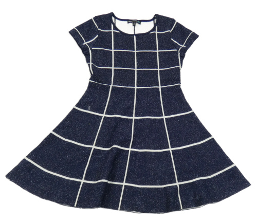 Tmavomodro-biele kockované úpletové šaty so trblietkami SEQUIN HEARTS
