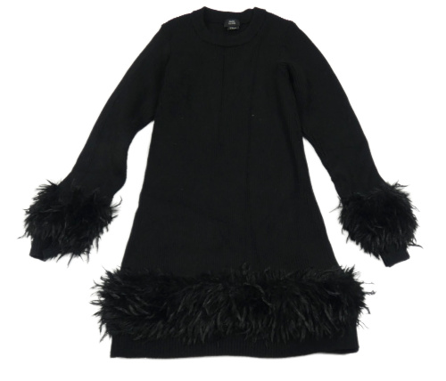 Čierne pletené rebrované šaty s kožešinovým lemem River Island